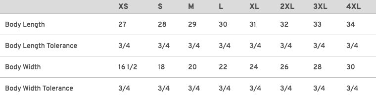 Our T-Shirts are considered a "Retail Fit" so we suggest you treat this more like a fitted t-shirt, and less like a boxier cut(think Hanes, Gildan, Fruit of the Loom).